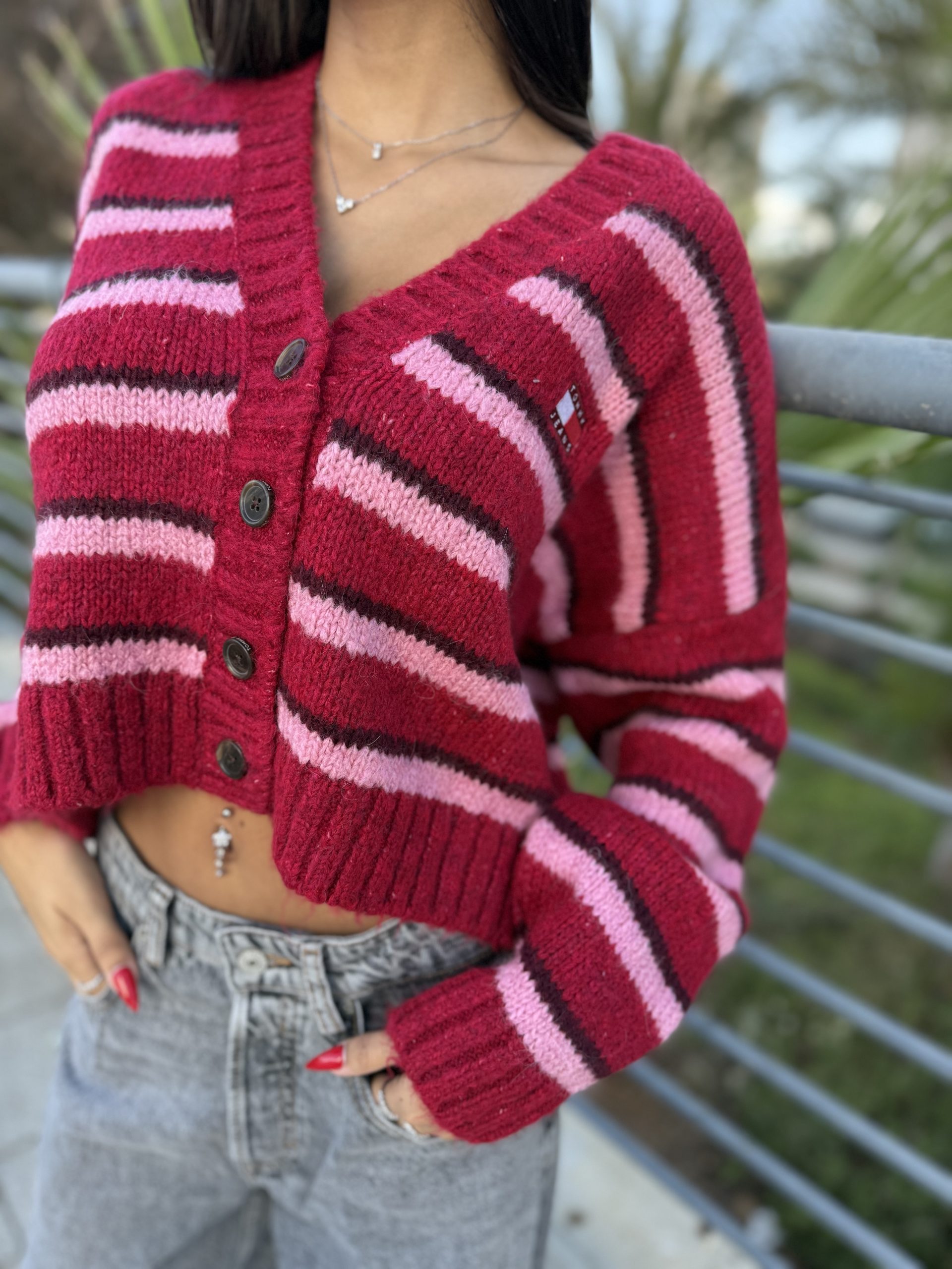 סוודר פסים אדום ורוד…