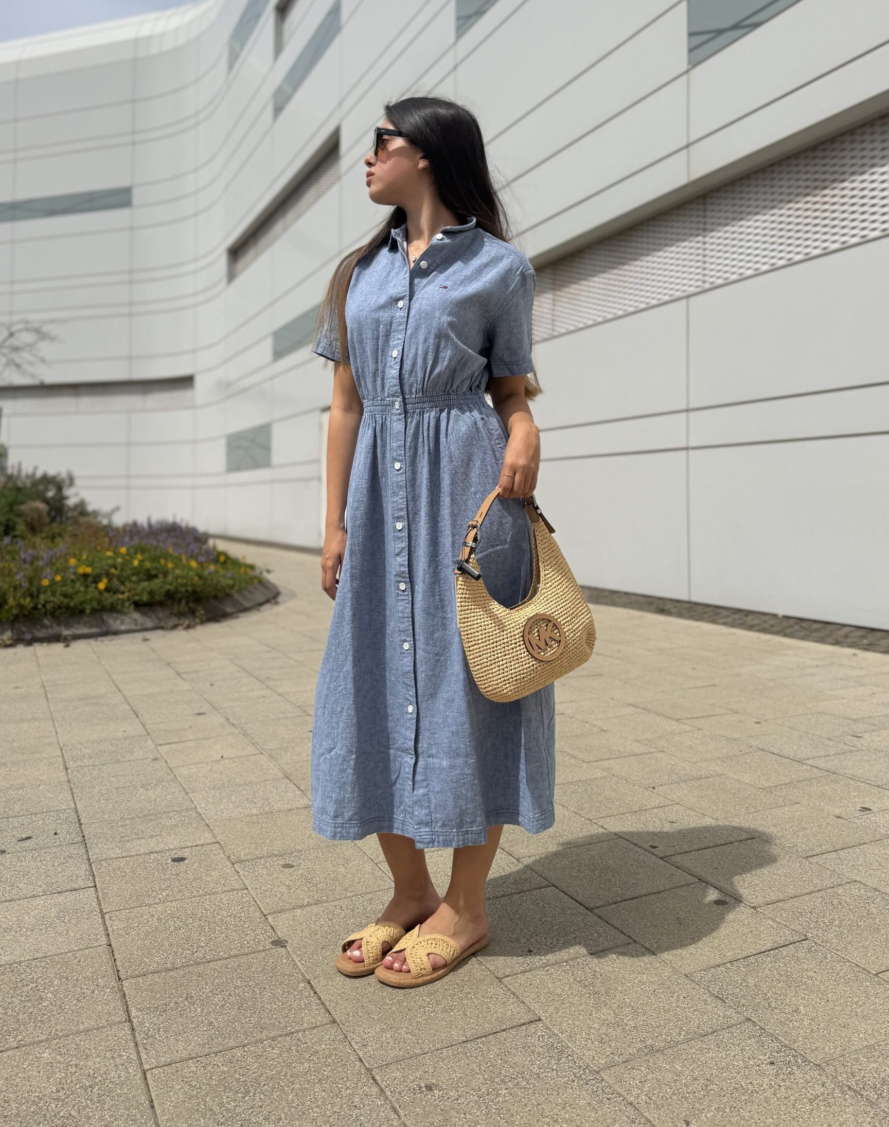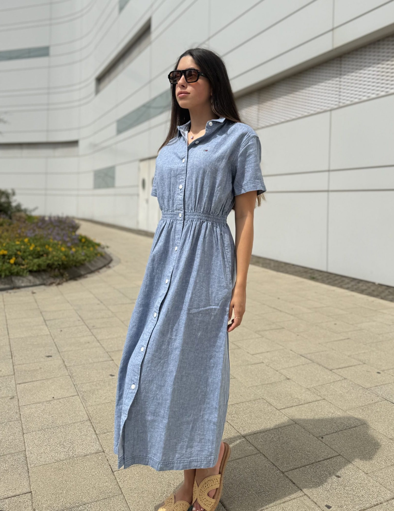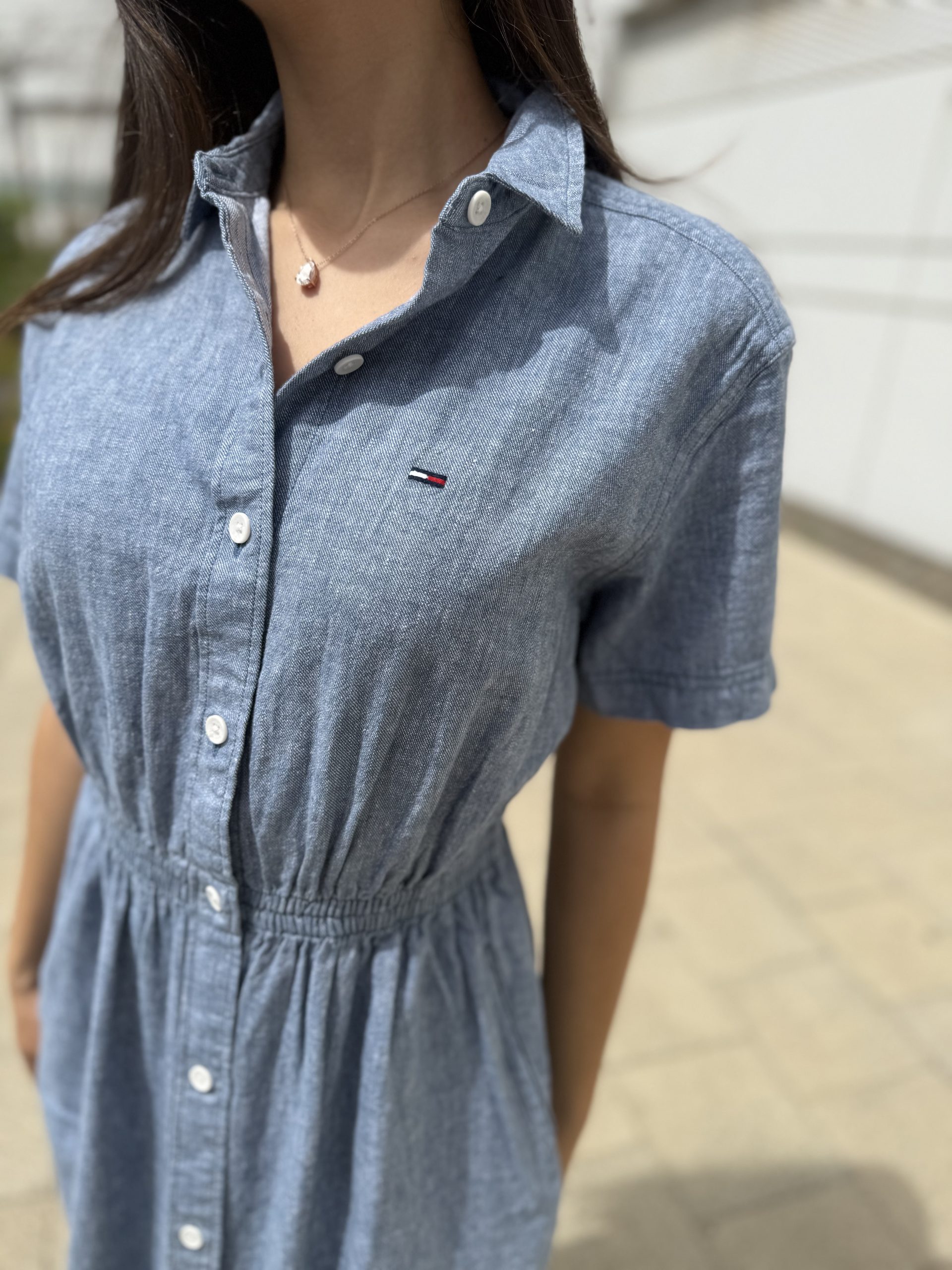 שמלה TOMMY ג'ינס ארוכה עם גומי במותן