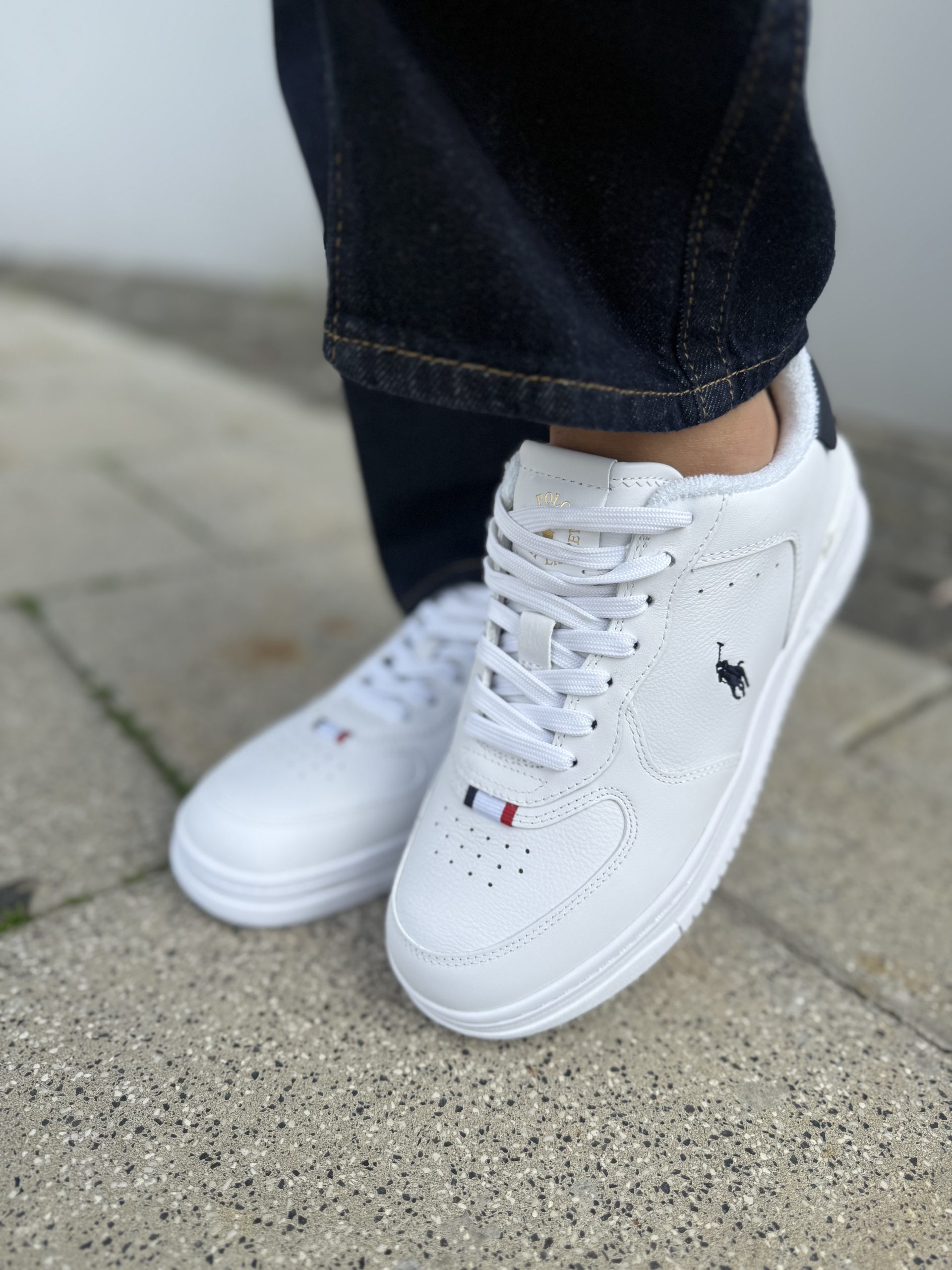 POLO 80P01636 סניקרס עור לוגו -צבע לבן כחול אדום quantity